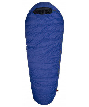 Warmpeace SOLITAIRE 500 - 170 cm (výška postavy) EXTRA FEET se 30 % peří v oblasti nohou navíc, v barvě Royal Blue/Black s hmotností 1060 g a teplotním limitním komfortem -9°C