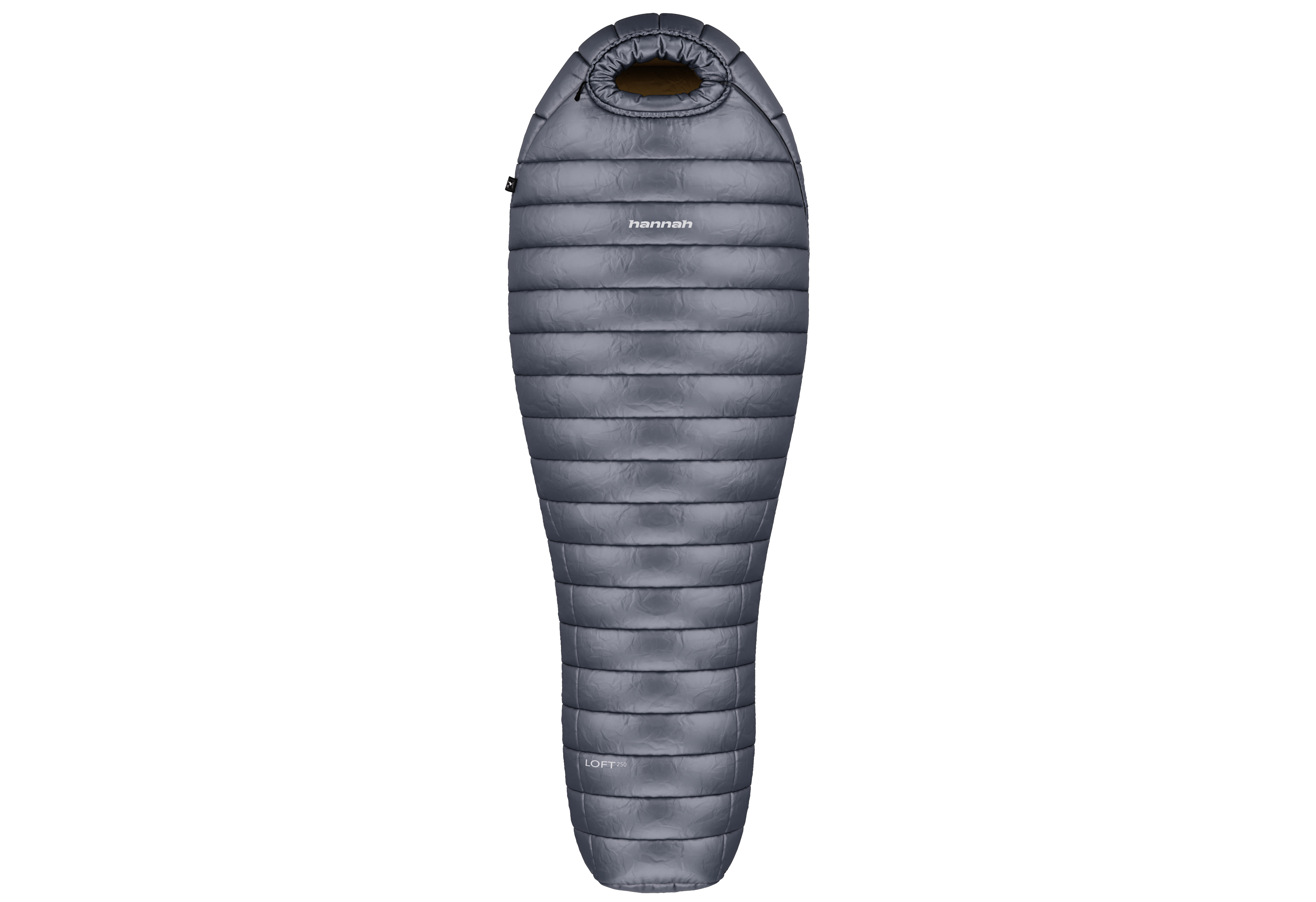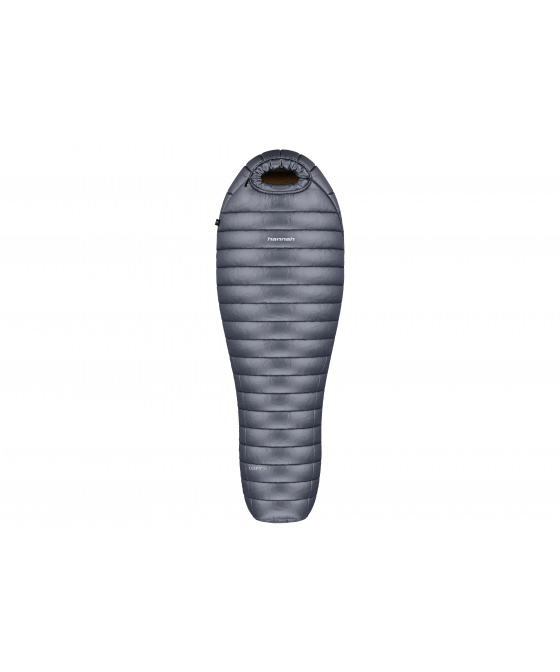 Lehký péřový spacák Hannah Loft 250 s váhou okolo 650 g, s minimálním objemem po sbalení určený pro letní pobyty v přírodě. Výplň tvoří kvalitní evropské husí peří - 750 cuin, vrchní materiál je prodyšný ripstopový 20D Nylon (s ochranou proti protržení) s úpravou DWR (Durable Water Repellent), díky které je látka vodoodpudivá. Propracovaná konstrukce komorového plnění zajistí komfortní spánek. Díky lehké látce a kvalitnímu peří, které má velkou schopnost zvětšit svůj objem po rozbalení, je spacák krásně nadýchaný a má vynikající izolační vlastnosti. Jeho výjimečné vlastnosti, jako je nízká hmotnost, odlehčený kompresní obal, kvalitní látka s úpravou DWR, vysoce kvalitní peří a malý objem po sbalení, ocení zejména ti, kteří si potrpí na lehkém a zároveň špičkovém vybavení do přírody. Spacák se vyrábí ve dvou délkách – pro osoby měřící max. 185cm a pro osoby měřící max. 195cm. Vychytávkami, které zaručí komfort při spaní, jsou anatomický střih, uzavřená tvarovaná kapuce, jednou rukou ovladatelné stahování kapuce, obousměrný YKK zip krytý légou ve tvaru písmene L, protažený až do dna spacáku, vyztužená léga proti zadrhávání zipu, pojistka proti samovolnému rozepínání zipu, poutka na zavěšení, kapsa na polštář v kapuci, či vnitřní kapsa. Rozměry obalu jsou pouhých 16 x 15 cm. Dodáváno s přídavným obalem, takže můžete peří skladovat nestlačené, abyste mu pomohli udržet jeho vzdušnost. Testováno v certifikované laboratoři dle EN 23537-1.