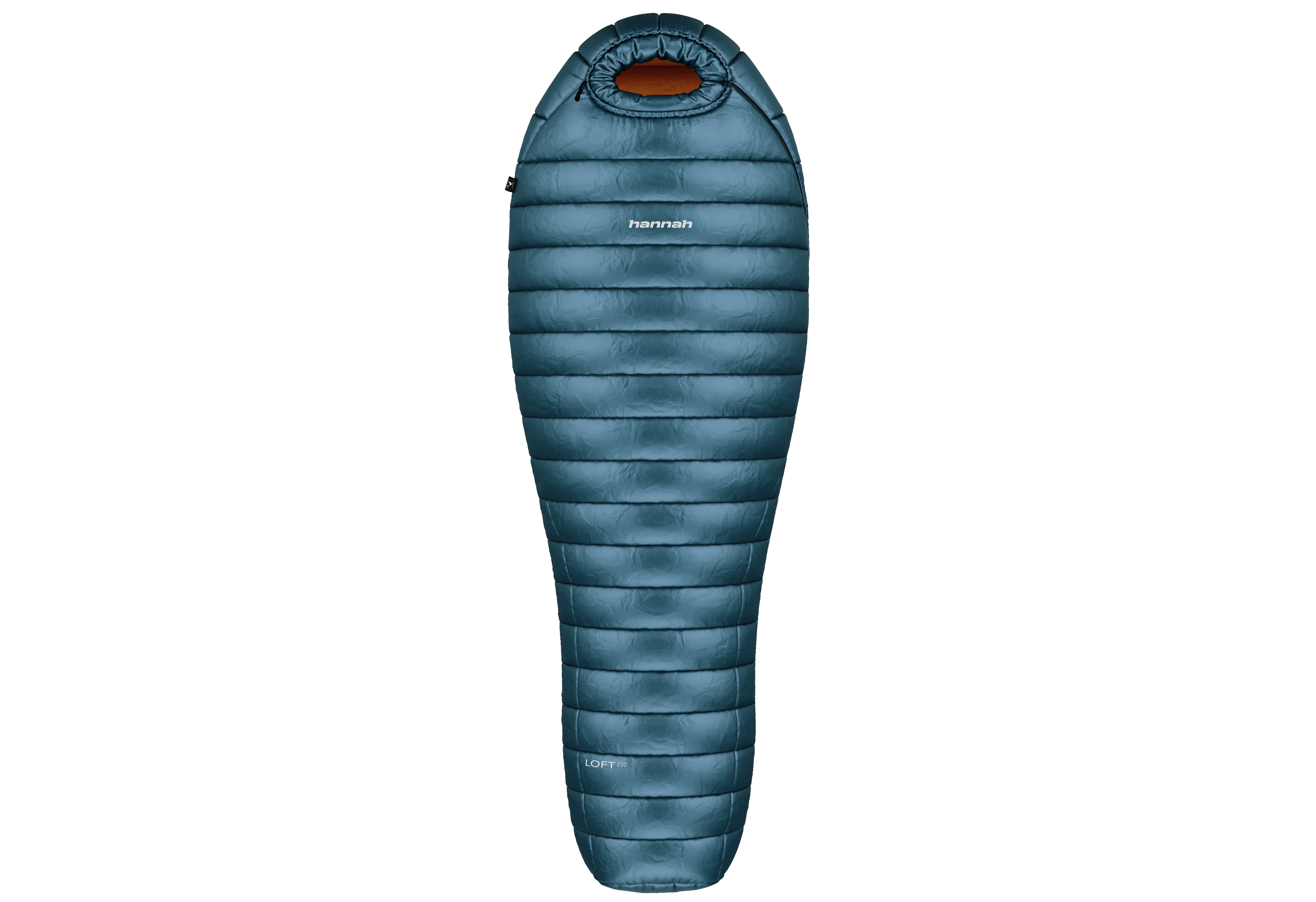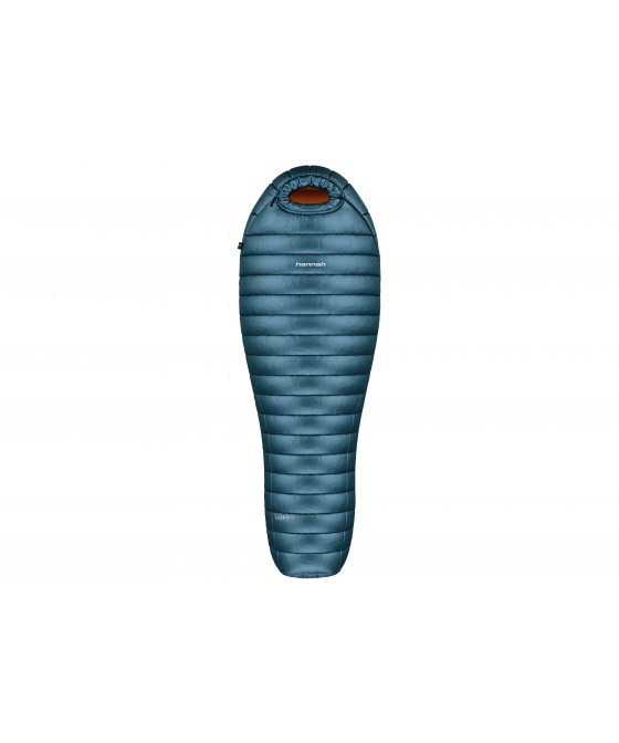 Lehký péřový spacák Hannah Loft 250 s váhou okolo 650 g, s minimálním objemem po sbalení určený pro letní pobyty v přírodě. Výplň tvoří kvalitní evropské husí peří - 750 cuin, vrchní materiál je prodyšný ripstopový 20D Nylon (s ochranou proti protržení) s úpravou DWR (Durable Water Repellent), díky které je látka vodoodpudivá. Propracovaná konstrukce komorového plnění zajistí komfortní spánek. Díky lehké látce a kvalitnímu peří, které má velkou schopnost zvětšit svůj objem po rozbalení, je spacák krásně nadýchaný a má vynikající izolační vlastnosti. Jeho výjimečné vlastnosti, jako je nízká hmotnost, odlehčený kompresní obal, kvalitní látka s úpravou DWR, vysoce kvalitní peří a malý objem po sbalení, ocení zejména ti, kteří si potrpí na lehkém a zároveň špičkovém vybavení do přírody. Spacák se vyrábí ve dvou délkách – pro osoby měřící max. 185cm a pro osoby měřící max. 195cm. Vychytávkami, které zaručí komfort při spaní, jsou anatomický střih, uzavřená tvarovaná kapuce, jednou rukou ovladatelné stahování kapuce, obousměrný YKK zip krytý légou ve tvaru písmene L, protažený až do dna spacáku, vyztužená léga proti zadrhávání zipu, pojistka proti samovolnému rozepínání zipu, poutka na zavěšení, kapsa na polštář v kapuci, či vnitřní kapsa. Rozměry obalu jsou pouhých 16 x 15 cm. Dodáváno s přídavným obalem, takže můžete peří skladovat nestlačené, abyste mu pomohli udržet jeho vzdušnost. Testováno v certifikované laboratoři dle EN 23537-1.