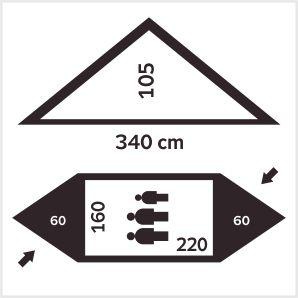 Dvouvchodový dvouplášťový „kopulovitý“ stan, obdélníkového půdorysu podlahy, vhodný pro všechny druhy turistiky až do středně náročných podmínek a pro četnější užívání! Stan lze používat i v zimě (doporučujeme našití „límce“ po obvodu tropika).