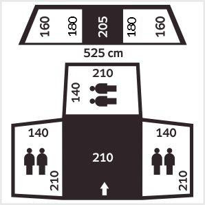 Jednovchodový dvouplášťový pětiprutý „semigeodetický kopulovitý“ stan se třemi ložnicemi, určený ke kempování a pobyt v přírodě až do středně náročných podmínek. Stan se staví celý najednou! Poskytne pohodlné zázemí šesti osobám s dostatkem prostoru pro uložení batohů nebo vaření v předsíňce.