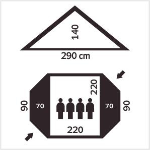 Stan pro 4 osoby. Jeho výhodou je prostornost a výška. Nabízí dvě rozměrné předsíně vhodné k vaření a uskladnění batohů.
