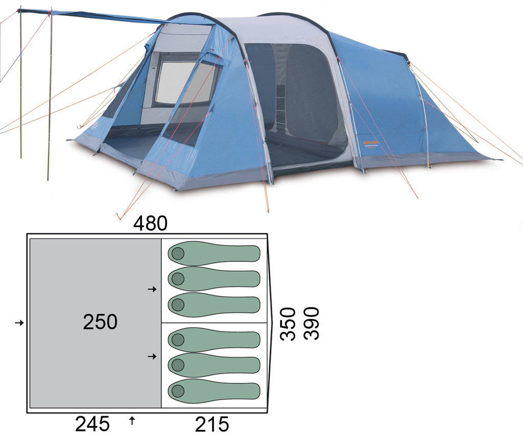 Prostorný stan Pinguin Interval 6 pro šest osob se dvěma oddělenými ložnicemi a velkou předsíňkou
