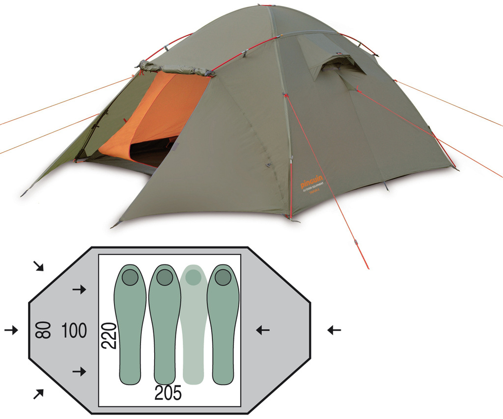 Inovovaný model stanu Pinguin Taifun 3 s dvěma vchody a předsíňkami a s dvěma příčnými pruty.