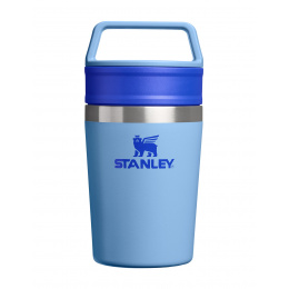 18/8 recyklovaná certifikovaná potravinářská nerezová ocel udrží nápoj teplý 3 hodin, tj. pokles z 95 stupňů Celsia na 60 stupňů Celsia udrží nápoj studený 4 hodin, tj. vzestup ze 2 stupňů Celsia na 10 stupňů Celsia ledová tříšť se rozpustí po 16 hodinách unikátní systém umožňuje použít buď jen jedno nebo obě víčka jedno víčko pro jídlo jedno víčko pro pití při používání s horkým nápojem, zejména při pití brčkem, může dojít k opaření nebo popálení. Buďte opatrní! 100% těsnost 100 % STANLEY 1913 originál kompatibilní s většinou držáků nápojů v autě (průměr základny 7 cm) Zkontrolujte si před zakoupením ten váš. Problematika otvoru na nápoje v autě je také popsaná v našich nejčastějších otázkách a odpovědích. možnost mýt v myčce Pozor! Myčka může způsobit poškození povrchu, na které se nevztahuje záruka. Funkčnost produktu je plně zachována. přirozeně bez BPA průměr spodní části 68 mm průměr horní části 77 mm výška 158 mm výška hrany hrnku po odšroubování víčka 105 mm (vejde se pod můj domácí kávovar?) hmotnost 250 g objem 230 ml STANLEY 1913 záruka 25 let Hrnek DUO má dvojitý uzávěr, který umožňuje produkt použít dvěma způsoby. Za prvé jako hrnek s pítkem, který se uzavře druhým uzávěrem s ouškem. Pijete skrze pítko. Nebo můžete vyřadit pítko a použít jen finální uzávěr. Hrnek potom můžete použít nejen jako hrnek, ze kterého normálně pijete ale i jako například malou termosku na jídlo, případně jako nádobu na "cokoliv". Hrnek je vakuový, tedy s dvojitou stěnou, která je v její horní části opatřena vnitřním závitem a zúžená. Celková tloušťka stěny, v její horní části, je cca 3-4 mm. Vnější povrch je opatřen barvou, která začíná cca 1 cm pod horním okrajem. Okraj je tedy hladký, příjemný na dotek rty a dobře se z něho pije. Hrnek je v každém druhu/způsobu užití 100% těsný.
