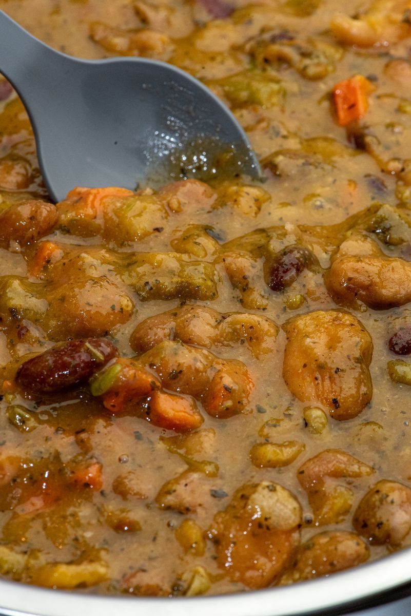 Míchané fazole 62% (červené, bílé, Borlotti, máslové, cizrna), cibule, zelené fazolky, mrkev, řepkový olej, rajský protlak, česnek, oregano, kukuřičná mouka, sůl, bílý pepř. Alergeny – vyznačeny tučně.