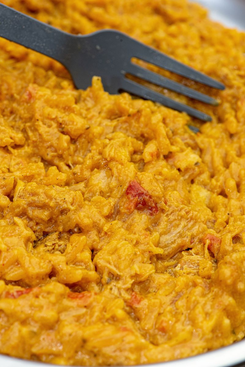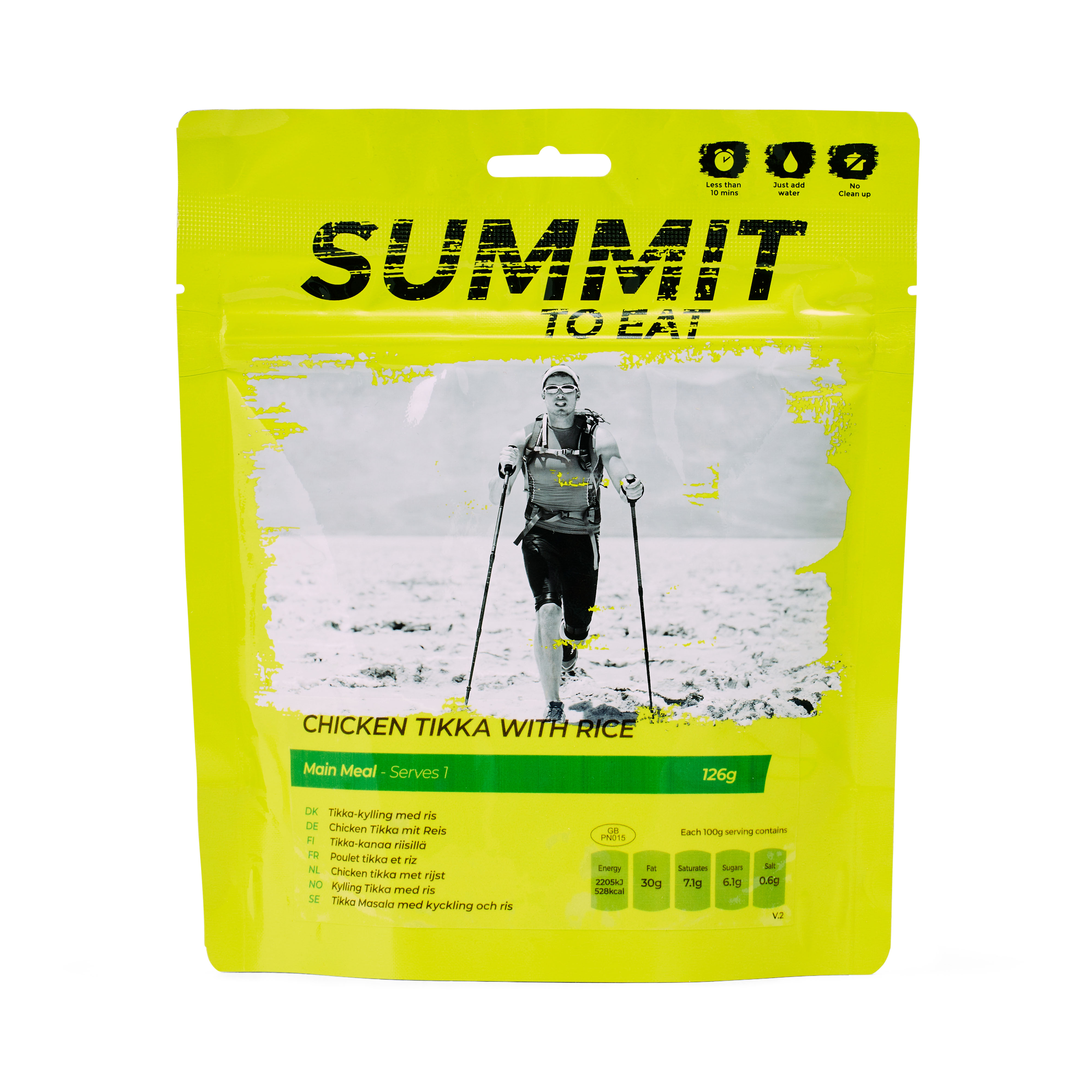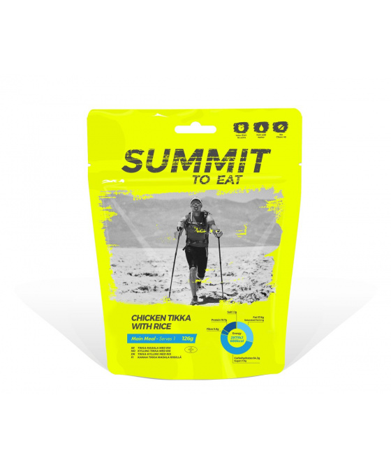 Dlouhozrnná rýže (36%), krájená rajčata, cibule, kuřecí maso (9%), smetana (mléko), řepkový olej, Tikka Masala Curry pasta [voda,vinný ocet, rajčatový protlak, slunečnicový olej, zázvor, česnek, koriandr, směs koření Garam Masala, drcený koriandr, cukr, mletá paprika, mořská sůl, odstředěné sušené mléko, koncentrovaná citronová šťáva, drcený kmín, kurkuma, drcená pískavice, kardamomový prášek, Chilli, kyselina mléčná, kyselina askorbová, bobkový list, stabilizátor (Xanthan), konzervant (sorban draselný)], jogurt (mléko), česnek, kukuřičná mouka, Chilli. Alergeny – vyznačeny tučně.
