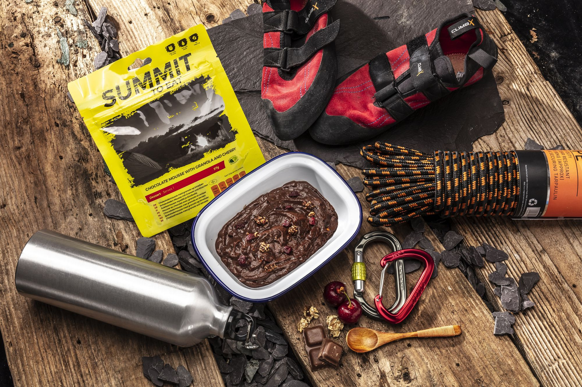 Toužíte po něčem sladkém, co vás zasytí a dodá energii i během náročných výprav? Naše čokoládová pěna s Granolou a třešněmi je přesně to, co hledáte! Tento lahodný dezert, připravený speciálně pro outdoorové nadšence, spojuje bohatou chuť čokolády s křupavostí Granoly a osvěžující kyselkostí třešní.