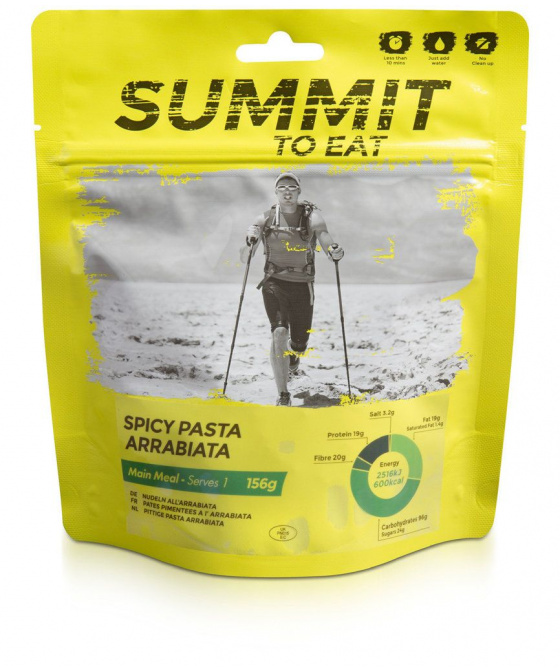Pochutnejte si na vynikajících pikatních těstovinách Arrabiata. Oblíbené těstoviny v pikantní rajčatovo-česnekové omáčce, vhodné i pro vegetariány, představují plnohodnotné teplé jídlo pro jakékoliv kempování nebo dobrodružství v horách.
