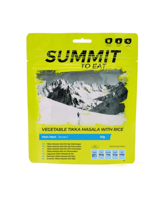 Rýže je nadýchaná a voňavá a slouží jako dokonalá příloha k nasáknutí aromatické omáčky tikka masala. Proces lyofilizace uchovává chuť, strukturu a živiny pokrmu, takže je ideální volbou pro kempování, turistiku nebo nouzové skladování potravin. Stačí pokrm rehydratovat horkou vodou a je připraven k vychutnání a nabízí lahodné a syté jídlo se všemi živými chutěmi indické kuchyně.