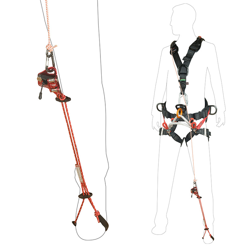 Neuvěřitelně efektivní nožní systém pro stoupání po laně s využitím techniky SRT (single rope technique). Součástí systému je hrudní blokant CAMP Turbochest s patentovanými rolničkami pro hladký průchod lana. Stoupací smyčka CAMP Turboknee Footloop je vyrobena ze 4mm repky a její délku lze jednoduše nastavit podle potřeby. Vysoce kvalitní elastická šňůra CAMP Turboknee Bungee během postupu okamžitě reaguje na uvolněný blokant a posouvá jej vzhůru po lanu. Turboknee Bungee lze jednoduše nainstalovat do speciálních směrovacích bodů na hrudním postroji - CAMP Tree Access SRT Chest a CAMP Tree Access ANSI XT - nebo jej lze připevnit k jakémukoli lezeckému postroji.