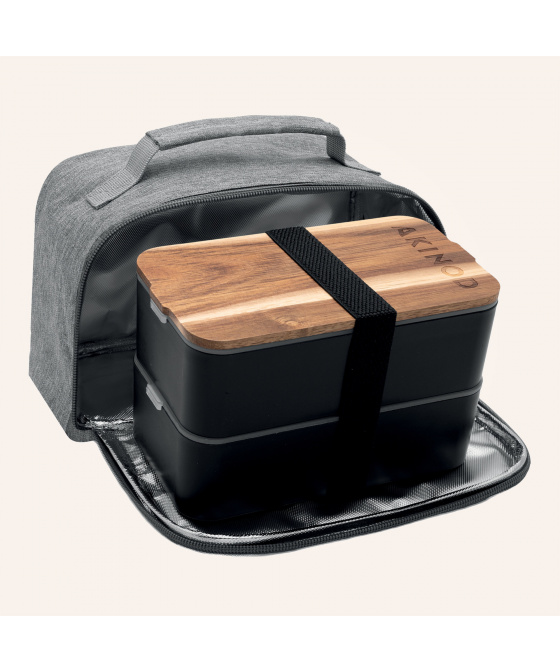 Svačinový box Akinod 11h58 černý s izolační taškou v šedé melírové barvě