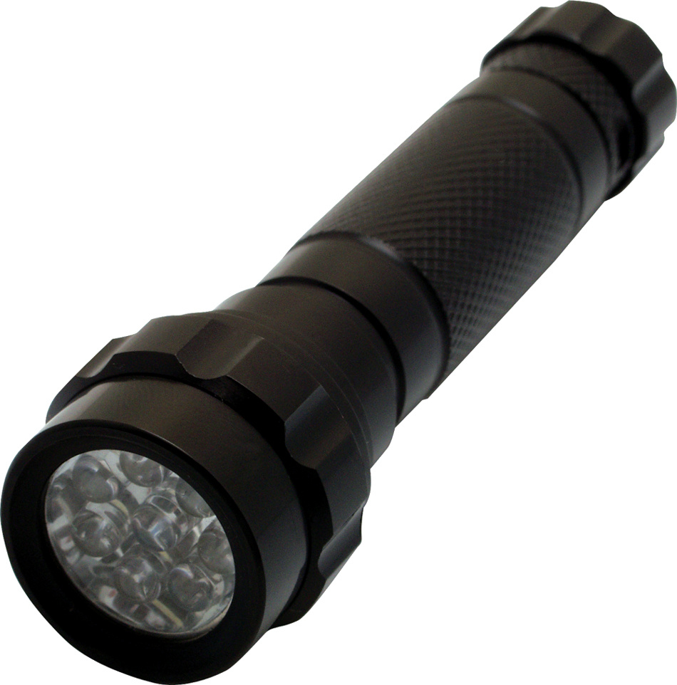 Ruční svítilna s 8 LED diodami, tělo z masivního hliníku, napájení 1 baterie AA.