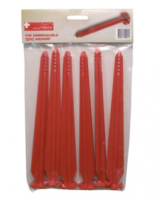 -sada 6 stanových kolíků vyrobených z velmi odolného a pevného plastu Piranha NT -hlava kolíku je plochá, nevyčnívá nad zem a zabraňuje tak zakopnutí a případnému zranění -čím hlouběji je kolík zaražen v zemi, tím vyššímu tahu odolává -po použití palice, kladiva či kamene při zatloukání nevznikají ostré hrany, které by mohly poškodit stan -v běžné půdě mohou být kolíky upevněny rukou nebo nohou -materiál kolíku je vysoce kvalitní a neláme se -pokud je narušen původní tvar, zpět ho lze vrátit umístěním do trouby při teplotě 160°C na dobu 5 min -vyrobeno ve Švýcarsku, kde je zaručena funkčnost všech výrobků Piranha -výrobek je bezpečný pro děti, nemá žádné ostré hrany -při výrobě je vynaloženo 15x méně energie než u kovových kolíků a je šetrná k životnímu prostředí -kolík má na délku o 50% vyšší pevnost v krutu než jiné stanové kolíky -ideální pro běžné stanování, turistiku a kempování