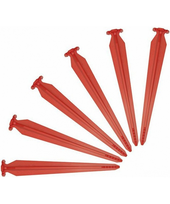 sada 6 stanových kolíků vyrobených z velmi odolného a pevného plastu Piranha NT hlava kolíku je plochá, nevyčnívá nad zem a zabraňuje tak zakopnutí a případnému zranění čím hlouběji je kolík zaražen v zemi, tím vyššímu tahu odolává po použití palice, kladiva či kamene při zatloukání nevznikají ostré hrany, které by mohly poškodit stan v běžné půdě mohou být kolíky upevněny rukou nebo nohou materiál kolíku je vysoce kvalitní a neláme se pokud je narušen původní tvar, zpět ho lze vrátit umístěním do trouby při teplotě 160°C na dobu 5 min vyrobeno ve Švýcarsku, kde je zaručena funkčnost všech výrobků Piranha výrobek je bezpečný pro děti, nemá žádné ostré hrany při výrobě je vynaloženo 15x méně energie než u kovových kolíků a je šetrná k životnímu prostředí kolík má na délku o 50% vyšší pevnost v krutu než jiné stanové kolíky ideální pro běžné stanování, turistiku a kempováníVíce