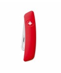 autentický švýcarský kapesní nůž ideální na namazání při snídani ve venkovním prostředí s ergonomickou červenou střenkou s měkkým úchopem a integrovanou pojistkou, nerezovou čepelí bez ostří pro praváky i leváky a pinzetouVíce