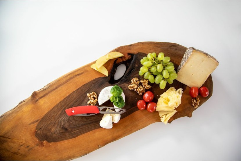 autentický švýcarský kapesní nůž speciálně konstruovaný pro milovníky sýrů čepel s určena pro krájení sýrů a pečiva, otvory na čepeli brání přilepení sýru na ostří a díky speciální špičce si sýr pohodlně nabodnete revoluční tvar a střenka nabízející příjemný úchop dělají z tohoto nože nejpohodlnější a nejsnadněji použitelný nůž vůbec pojistka integrovaná přímo do střenky nože je chráněna měkkou pryží pojistku aktivujete pouhým stisknutím loga Swiza na střence ergonomicky zakřivený tvar nože umožňuje lepší a snadnější přístup k nástrojům nůž lze dobře otevřít levou nebo pravou rukou délka čepele 75 mm a střenky 95 mm čepel je vyrobena z kvalitní extra odolné nerezové oceli 440 s tvrdostí 57 HRc součástí je malá pinzeta baleno v boxuVíce