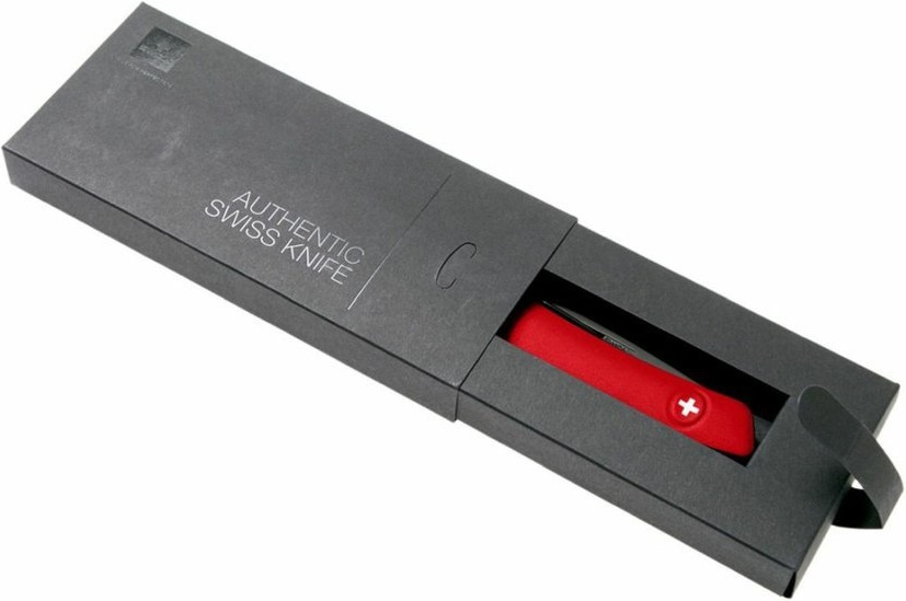 autentický švýcarský kapesní nůž pocházející z obnovené výroby ve známé továrně v Delémontu, hlavním a největším městě kantonu Jura revoluční tvar a střenka nabízející měkký úchop dělají z tohoto nože nejpohodlnější a nejsnadněji použitelný nůž vůbec pojistka integrovaná přímo do střenky nože je chráněna měkkou pryží pojistku aktivujete pouhým stisknutím loga Swiza na střence ergonomicky zakřivený tvar nože umožňuje lepší a snadnější přístup k nástrojům díky nehetníku na každé čepeli lze nůž dobře otevřít levou nebo pravou rukou délka čepele 75 mm a střenky 95 mm čepel potažená černou vrstvou PVD je vyrobena z kvalitní extra odolné nerezové oceli 440 s tvrdostí 57 HRc baleno v dárkovém boxu nástroje: nerezová čepel s nehetníkem výstružník, šídlo vývrtka pinzetaVíce