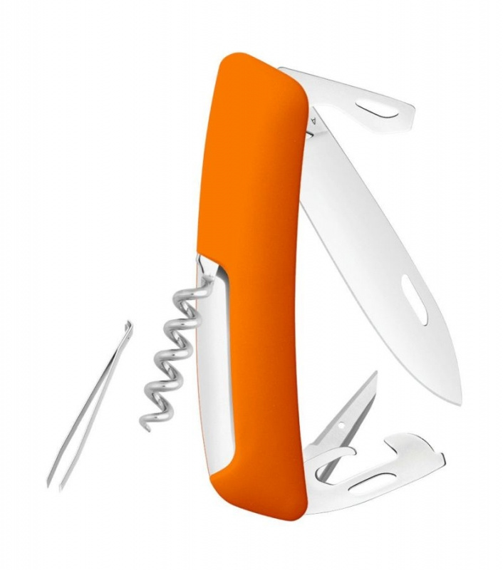 nástroje: nerezová čepel s nehetníkem výstružník, šídlo otvírák na lahve a otvírák na konzervy odstraňovač izolace z drátů plochý šroubovák No 1 vývrtka pinzeta