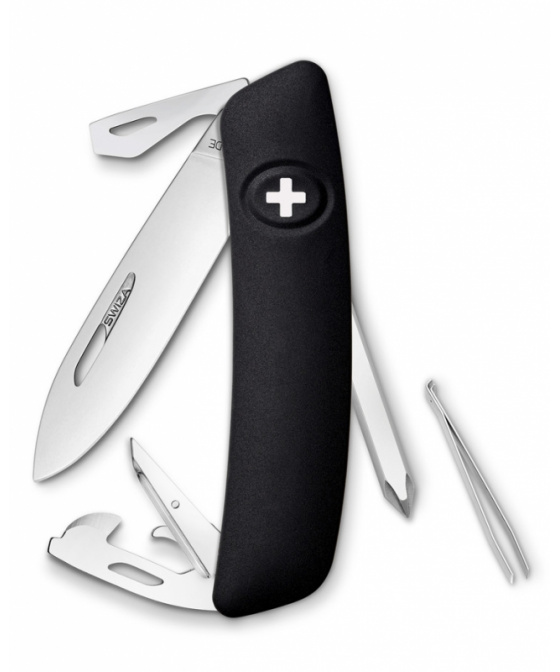 -autentický švýcarský kapesní nůž pocházející z obnovené výroby ve známé továrně v Delémontu, hlavním a největším městě kantonu Jura -revoluční tvar a střenka nabízející měkký úchop dělají z tohoto nože nejpohodlnější a nejsnadněji použitelný nůž vůbec -pojistka integrovaná přímo do střenky nože je chráněna měkkou pryží -pojistku aktivujete pouhým stisknutím loga Swiza na střence -ergonomicky zakřivený tvar nože umožňuje lepší a snadnější přístup k nástrojům -díky nehetníku na každé čepeli lze nůž dobře otevřít levou nebo pravou rukou -délka čepele 75 mm a střenky 95 mm -čepel je vyrobena z kvalitní extra odolné nerezové oceli 440 s tvrdostí 57 HRc -baleno v plastovém boxu