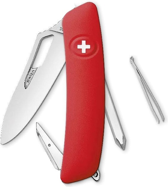 autentický švýcarský kapesní nůž pocházející z obnovené výroby ve známé továrně v Delémontu, hlavním a největším městě kantonu Jura revoluční tvar a střenka nabízející měkký úchop dělají z tohoto nože nejpohodlnější a nejsnadněji použitelný nůž vůbec pojistka integrovaná přímo do střenky nože je chráněna měkkou pryží pojistku aktivujete pouhým stisknutím loga Swiza na střence ergonomicky zakřivený tvar nože umožňuje lepší a snadnější přístup k nástrojům čepel otvíratelná jednou rukou je vyrobena z kvalitní extra odolné nerezové oceli 440 s tvrdostí 57 HRc délka čepele 75 mm a střenky 95 mm čepel je vyrobena z kvalitní extra odolné nerezové oceli 440 s tvrdostí 57 HRc kroužek baleno v boxu nástroje: nerezová čepel s nehetníkem výstružník, šídlo křížový šroubovák No. 1 pinzeta kroužekVíce