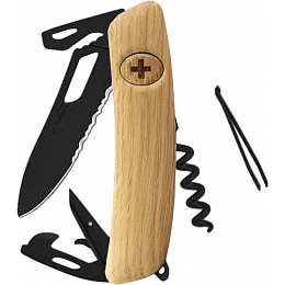 Popis Swiza kapesní nůž SH03TR Allblack Single Hand Wood Oak Wavy Edge
