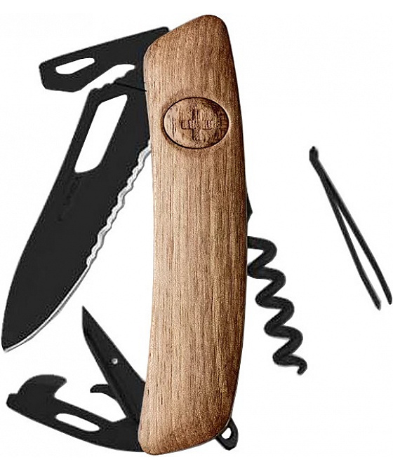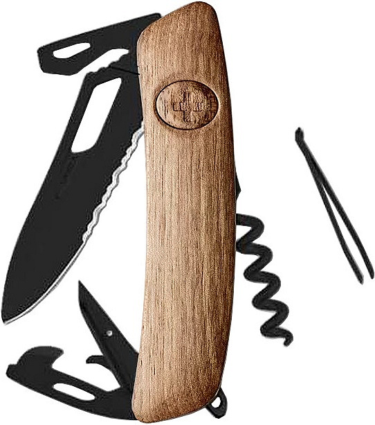 Swiza kapesní nůž SH03TR Allblack Single Hand Wood Walnut Wavy Edge