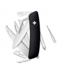 autentický švýcarský kapesní nůž pocházející z obnovené výroby ve známé továrně v Delémontu, hlavním a největším městě kantonu Jura revoluční tvar a střenka nabízející měkký úchop dělají z tohoto nože nejpohodlnější a nejsnadněji použitelný nůž vůbec pojistka integrovaná přímo do střenky nože je chráněna měkkou pryží pojistku aktivujete pouhým stisknutím loga Swiza na střence ergonomicky zakřivený tvar nože umožňuje lepší a snadnější přístup k nástrojům čepel otvíratelná jednou rukou je vyrobena z kvalitní extra odolné nerezové oceli 440 s tvrdostí 57 HRc délka čepele 75 mm a střenky 95 mm čepel na vyřezávání o délce 75 mm nerezová pilka pro čistý a přesný řez, jejíž geometrie stoupání směrem vzhůru zajišťuje vysoký výkon při řezání bez zatížení robustní nůžky oko pro upevnění kroužku na klíče baleno v boxu nástroje: nerezová čepel s nehetníkem nůžky pilka výstružník, šídlo otvírák na lahve otvírák na konzervy s jemným plochým šroubovákem odstraňovač izolace z drátů křížový šroubovák No 3 vývrtka pinzetaVíce