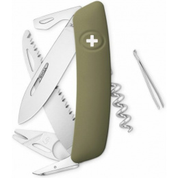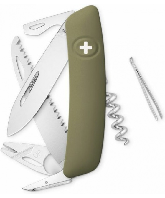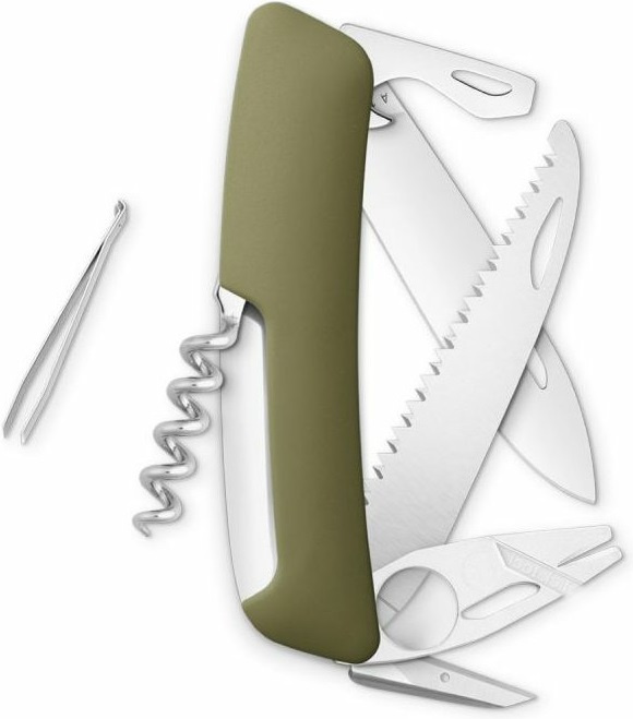 autentický švýcarský kapesní nůž pocházející z obnovené výroby ve známé továrně v Delémontu, hlavním a největším městě kantonu Jura inovativní moderní nůž obsahuje sofistikovaný nástroj s lupou speciálně navržený na odstranění klíšťat klíšťata se mohou stát zdrojem nepříjemných potíží zejména v průběhu jarních a letních i podzimních měsíců při pohybu v travnatých a lesnatých oblastech otvor na plastovém odstraňovači klíšťat umožňuje vyjmutí velkých i velmi malých klíšťat revoluční tvar a střenka nabízející měkký úchop dělají z tohoto nože nejpohodlnější a nejsnadněji použitelný nůž vůbec pojistka integrovaná přímo do střenky nože je chráněna měkkou pryží pojistku aktivujete pouhým stisknutím loga Swiza na střence ergonomicky zakřivený tvar nože umožňuje lepší a snadnější přístup k nástrojům díky nehetníku na každé čepeli lze nůž dobře otevřít levou nebo pravou rukou délka čepele 75 mm a střenky 95 mm čepel je vyrobena z kvalitní extra odolné nerezové oceli 440 s tvrdostí 57 HRc robustní nerezová pilka pro čistý a přesný řez, jejíž geometrie stoupání směrem vzhůru zajišťuje vysoký výkon při řezání bez zatížení baleno v plastovém boxu nástroje: nerezová čepel s nehetníkem odstraňovač klíšťat s lupou pilka výstružník, šídlo otvírák na lahve s ohýbaček drátu plochý šroubovák No 3 vývrtka pinzetaVíce