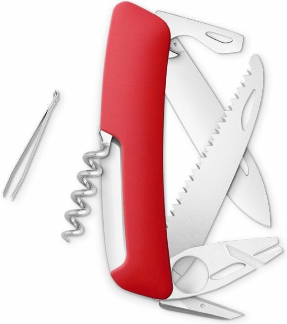 autentický švýcarský kapesní nůž pocházející z obnovené výroby ve známé továrně v Delémontu, hlavním a největším městě kantonu Jura inovativní moderní nůž obsahuje sofistikovaný nástroj s lupou speciálně navržený na odstranění klíšťat klíšťata se mohou stát zdrojem nepříjemných potíží zejména v průběhu jarních a letních i podzimních měsíců při pohybu v travnatých a lesnatých oblastech otvor na plastovém odstraňovači klíšťat umožňuje vyjmutí velkých i velmi malých klíšťat revoluční tvar a střenka nabízející měkký úchop dělají z tohoto nože nejpohodlnější a nejsnadněji použitelný nůž vůbec pojistka integrovaná přímo do střenky nože je chráněna měkkou pryží pojistku aktivujete pouhým stisknutím loga Swiza na střence ergonomicky zakřivený tvar nože umožňuje lepší a snadnější přístup k nástrojům díky nehetníku na každé čepeli lze nůž dobře otevřít levou nebo pravou rukou délka čepele 75 mm a střenky 95 mm čepel je vyrobena z kvalitní extra odolné nerezové oceli 440 s tvrdostí 57 HRc robustní nerezová pilka pro čistý a přesný řez, jejíž geometrie stoupání směrem vzhůru zajišťuje vysoký výkon při řezání bez zatížení baleno v boxu nástroje: nerezová čepel s nehetníkem odstraňovač klíšťat s lupou pilka výstružník, šídlo otvírák na lahve s ohýbaček drátu plochý šroubovák No 3 vývrtka pinzetaVíce