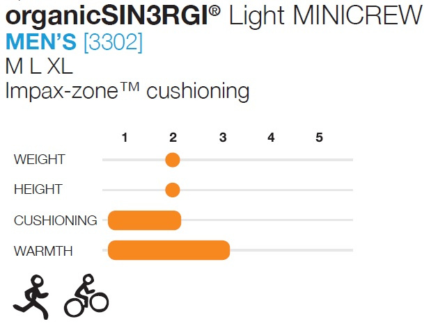36% organická merino vlna + 35% SIN3RGI polyester + 27% nylon + 2% lycra spandex