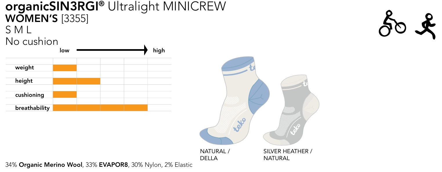 Teko 3355 S3O Ultralight Minicrew silver heather-natural dámské běžecké ponožky