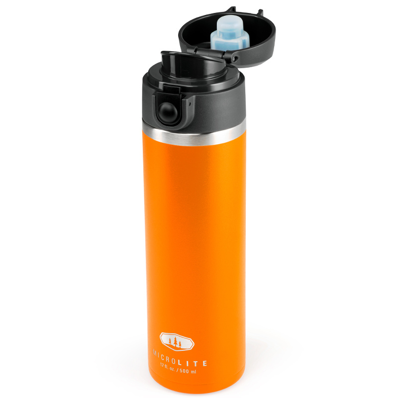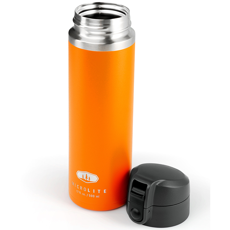 Dvouplášťová lehoučká termoska se šroubovacím uzávěrem, které má na vršku odklápěcí víko ovládané pomocí tlačítka.. Neuvěřitelně tenké 2mm stěny, které jsou tenčí než většina jednoplášťových plastových láhví, chrání nápoj studený po dobu 20 hodin a teplý po dobu 10 hodin. Microlite 500 Flip je vhodný zejména pro běžkaření, či třeba menší trek. Termohrnek GSI Microlite je o 1/3 tenčí než tradiční termosky.