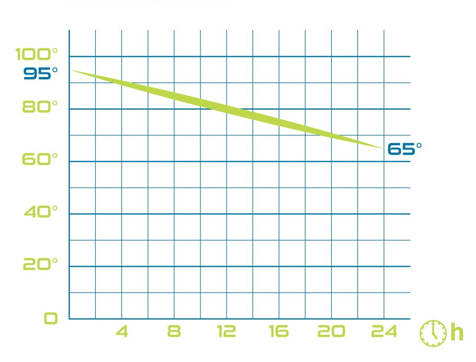 - Po 24 hodinách vroucí nápoj o počáteční teplotě 95°C v termosce dosahuje teploty okolo 65°C za venkovních podmínek 18°C.