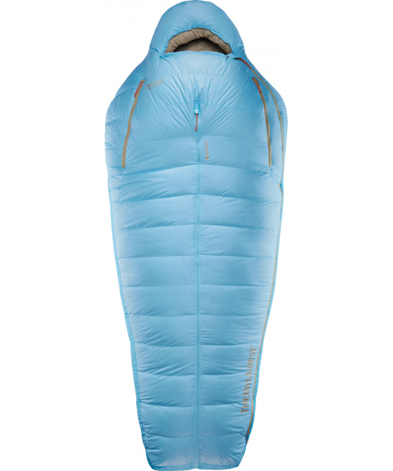 Zipy YKK s ochranou proti zadrhávání, stahovatelná kapuce, průvlečná trubice na zip, průvlečný límec a dvoucestný vstupní zip. Dodává se s kompresním a úložným vakem.