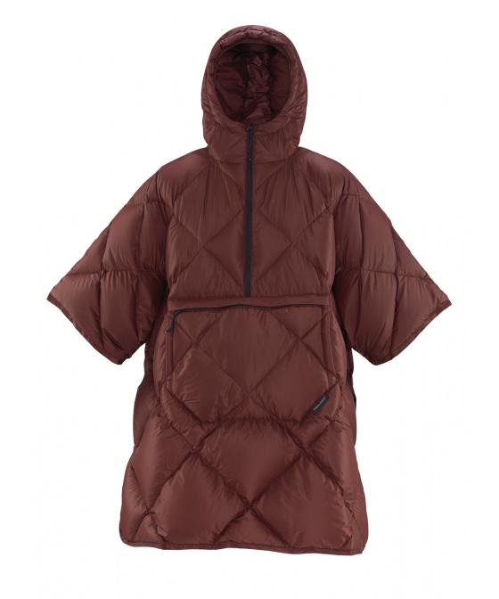 Je vyrobeno ze 100% recyklovaného nylonu s certifikací Global Recycle Standard (GRS) a je doplněno vodoodpudivou vrstvou DWR. V kombinaci certifikovaným prachovým peřím (650+cuni Nikwax Hydrofobic Down, RDS Standard) zachovává schopnost udržet teplo ve vlhkých podmínkách. Designové prvky, jako je zip z bundy, přiléhavá kapuce a praktické zapínání, které minimalizuje přebytečnou látku typickou pro tradiční ponča, jej činí funkčním při pobytu v kempu i za jeho branami. Díky přední kapse, která slouží i jako vak na věci, se budete moci sbalit a vzít si s sebou svou oblíbenou vrstvu, kamkoli se vydáte.