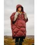 Je vyrobeno ze 100% recyklovaného nylonu s certifikací Global Recycle Standard (GRS) a je doplněno vodoodpudivou vrstvou DWR. V kombinaci certifikovaným prachovým peřím (650+cuni Nikwax Hydrofobic Down, RDS Standard)  zachovává schopnost udržet teplo ve vlhkých podmínkách. Designové prvky, jako je zip z bundy, přiléhavá kapuce a praktické zapínání, které minimalizuje přebytečnou látku typickou pro tradiční ponča, jej činí funkčním při pobytu v kempu i za jeho branami. Díky přední kapse, která slouží i jako vak na věci, se budete moci sbalit a vzít si s sebou svou oblíbenou vrstvu, kamkoli se vydáte.
