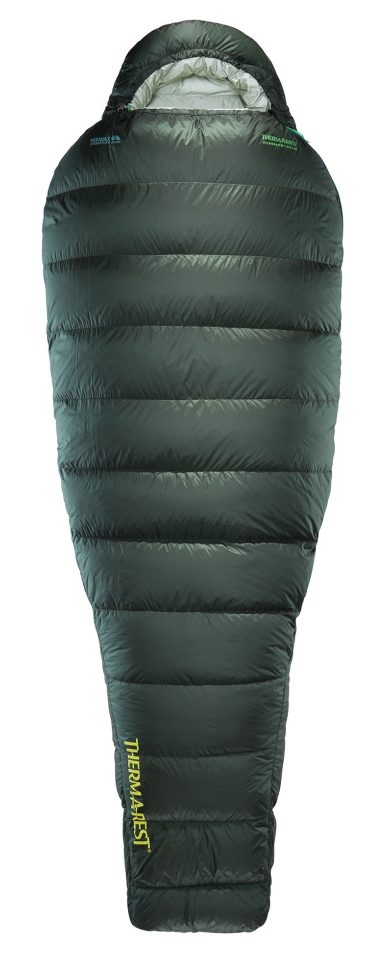 Popis Thermarest HYPERION 32F/0C Regular Black Forest péřový spacák zelený