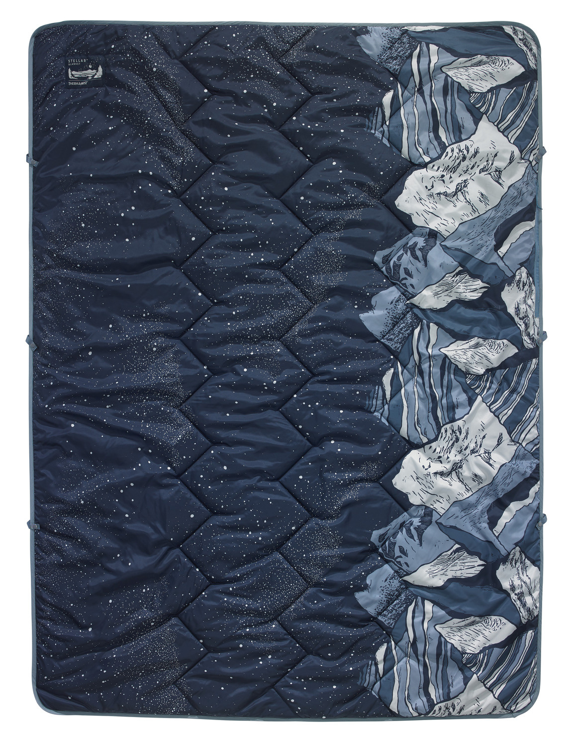 Kempingová přikrývka kombinuje dobrou sbalitelnost, rychleschnoucí technický materiál a dobré izolační vlastnosti. Přikrývka patří do řady Trek & Travel, je univerzální, vhodná na kempování, pláž nebo doma na zahradě. Po obvodu deky jsou popruhy pro přichycení deky ke karimatce nebo pro spojení s jinými přikrývkami. Ukažte svoji lásku k přírodě a cestování pomocí krásného designu a nových barev přikrývky Stellar Blanket.