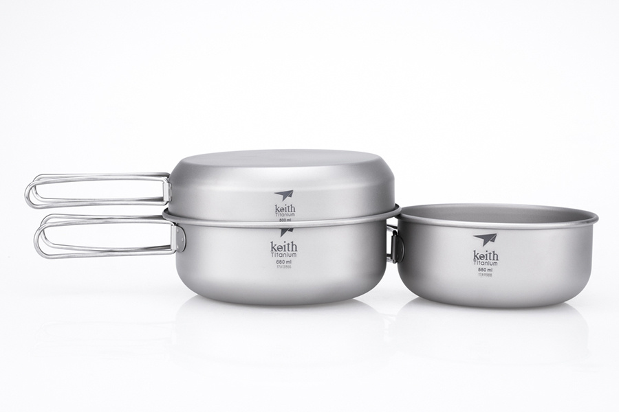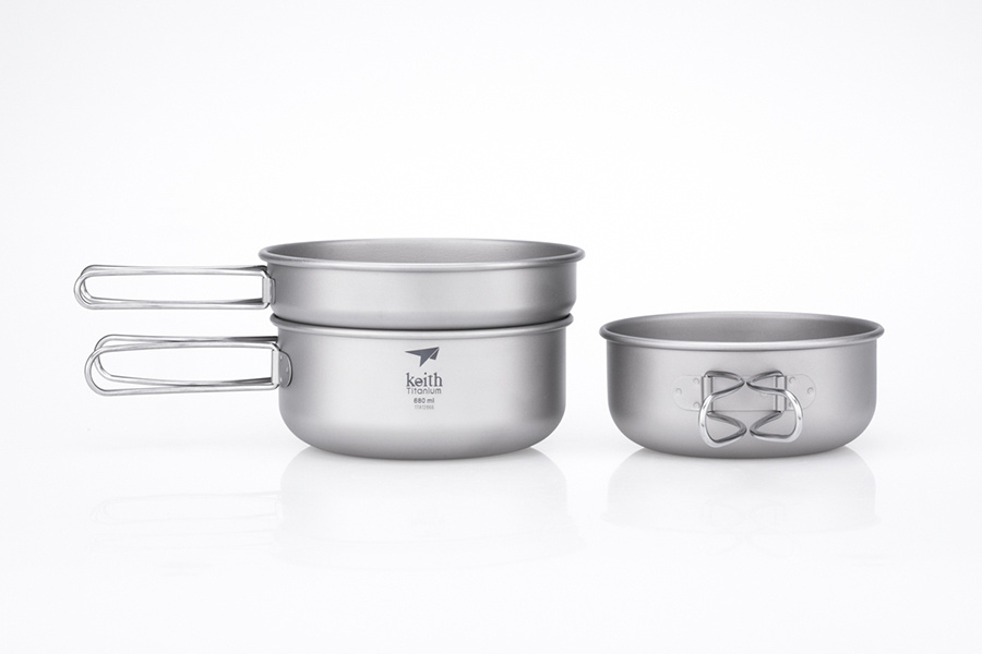 Lehká třídílná titanová sada Keith Cook Set Ti6053 (243g) pro vyznavače minimalismu a ultra-lightu.