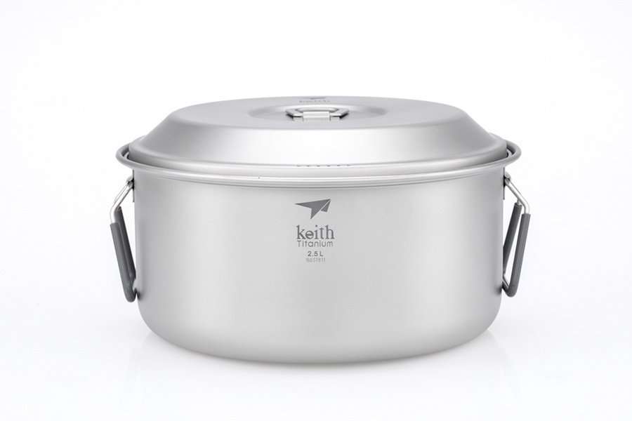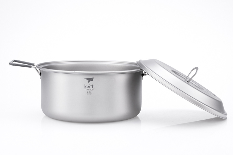 Pro opravdové minimalisty je určen teto "maximální" titanový hrnec s poklicí o objemu 2500 ml. s hmotností 370 g z produkce Keith Titanium.