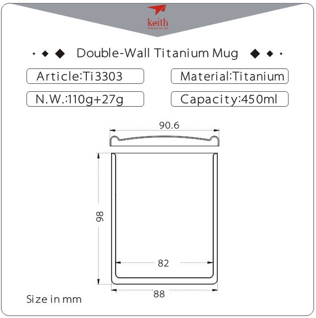 Téměř nezničitlený hrnek z titanu. Precizní z pracování od jednoho z lídrů výroby titanových produktů. Titan je zdravotně nezávadný, netoxický materiál, který je o 50% lehčí než ocel a zároveň o 30% pevnější. Titan odolává teplotám -253°C do +600°C.