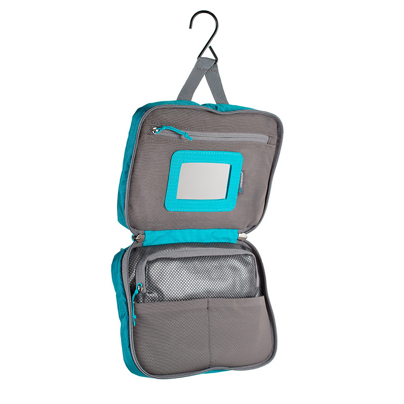 Wash Bag je prostorná taška na mycí a hygienické potřeby s množstvím úložných kapes, odepínacím zrcátkem a háčkem na zavěšení. Taška je vyrobena z velice odolných a lehkých materiálů a obsahuje nepromokavou uzavíratelnou kapsu pro uložení cenností při vstupu do sprchy.