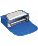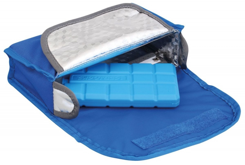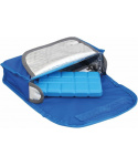 modrá přepravní taška schladící vložkou ideální taška na léky,které musí být uloženy v chladu zmrazená chladící vložkaudrží léky chladné po dobu 8 až 10hodin po uplynutí této doby musíbýt chladící vložka opět zmrazena hlavní oddělení s chladícívložkou uzavíratelné suchým zipem vnitřní volně přístupnéoddělení vnitřní malá kapsauzavíratelná zipem zadní volně přístupnéoddělení na suchý zip stříbrná izolační fólie chladící vložka jesoučástí balení