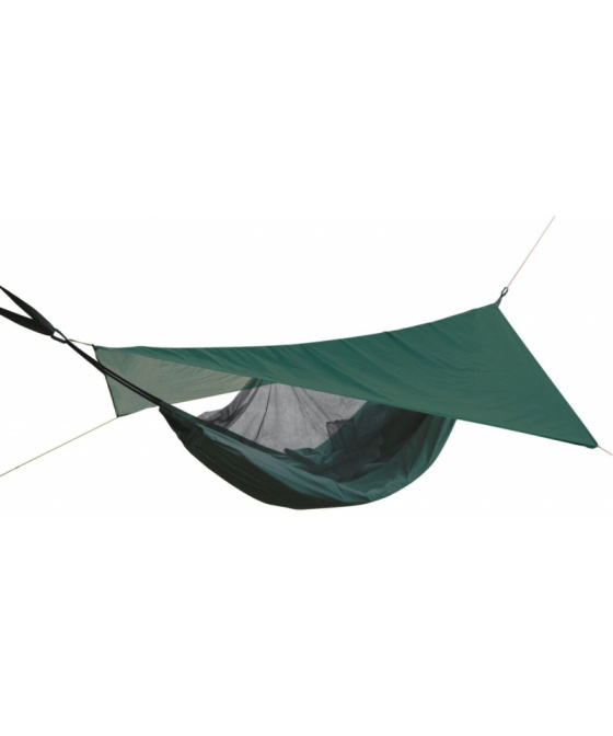 -multifunkční houpací síť vhodná pro nouzové bivakování -moskytiéra bez impregnace -odnímatelná nylonová stříška proti dešti (270 x 240 cm), kterou lze použít i při spaní na zemi -boční vstup -součástí balení připevňovací lanka -max. výška postavy 180 cm