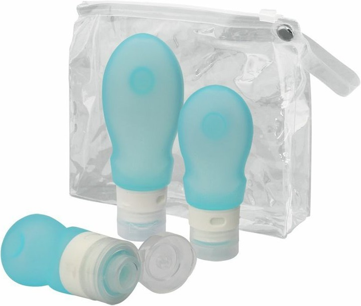 sada tří měkkých stlačitelných silikonových lahví tři různé objemy 37 ml, 60 ml, 89 ml slouží pro vymačkávání a dávkování mýdla, šamponu a jiných kosmetických přípravků lahve lze velmi snadno naplnit a vyprázdnit díky velkého plnícímu otvoru šroubovací uzávěr s odklápěcím víčkem zabraňuje ztrátě tekutiny a udržuje okolí v čistotě díky přísavce lze lahve snadno upevnit na hladkou stěnu, zrcadlo, koupelnové dlaždice apod. baleno v transparetním voděodolném zipovém pouzdru vyhovuje předpisům pro přepravu v příručním zavazadle v letecké přepravě neobsahuje BPA
