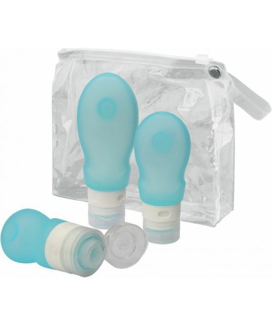 sada tří měkkých stlačitelných silikonových lahví tři různé objemy 37 ml, 60 ml, 89 ml slouží pro vymačkávání a dávkování mýdla, šamponu a jiných kosmetických přípravků lahve lze velmi snadno naplnit a vyprázdnit díky velkého plnícímu otvoru šroubovací uzávěr s odklápěcím víčkem zabraňuje ztrátě tekutiny a udržuje okolí v čistotě díky přísavce lze lahve snadno upevnit na hladkou stěnu, zrcadlo, koupelnové dlaždice apod. baleno v transparetním voděodolném zipovém pouzdru vyhovuje předpisům pro přepravu v příručním zavazadle v letecké přepravě neobsahuje BPAVíce