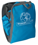 kompaktní modrá skládací taška 50l z odolného polyesteru ideální pro přenášení sportovních potřeb nebo jako záložní cestovní taška s jedním prostorným oddělením na zip, odnímatelnými ramenními popruhy a integrovaným obalemVíce