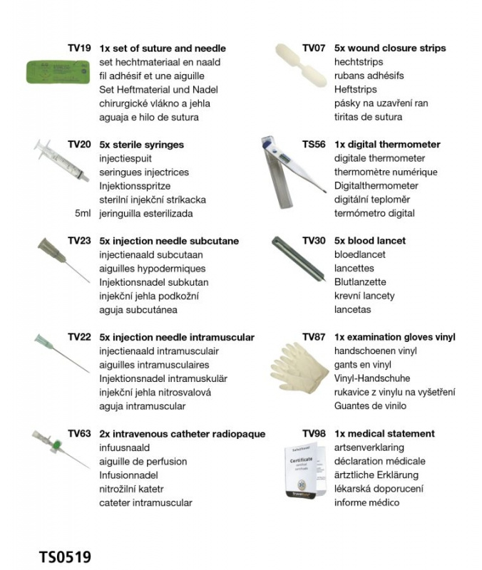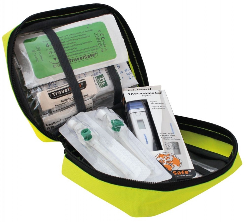 -lékárna se skládá ze sterilní předmětů, jako jsou injekční stříkačky, jehly nebo krevní lancety nezbytné během cest v zemích se zvýšeným zdravotním rizikem