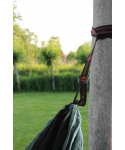 -sada pro snadné zavěšení hamaky nebou houpací sítě , která je okamžitě připravena k použití během několika minut díky systému smyček na popruzích -stačí omotat popruh kolem stromu a upevnit pomocí kovových karabin k jedné ze smyček -každý popruh je dlouhý 250 cm, široký 25 mm a má sedm smyček -zesílené prošívání -součástí jsou dvě odolné kovové karabiny s drátěným zámkem